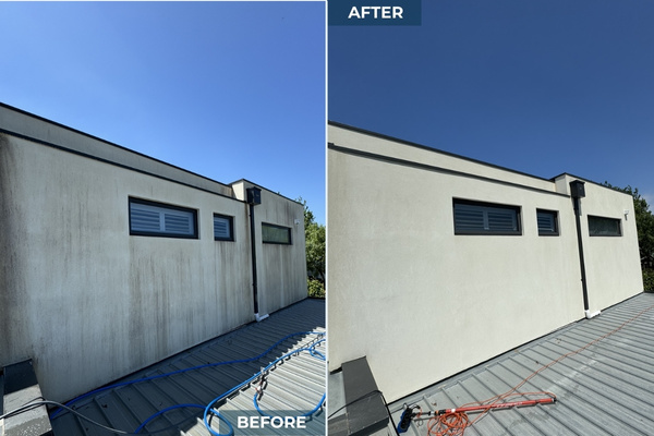 - Rinse down walls, gutters, fascias and surrounding areas so everything looks clean and even